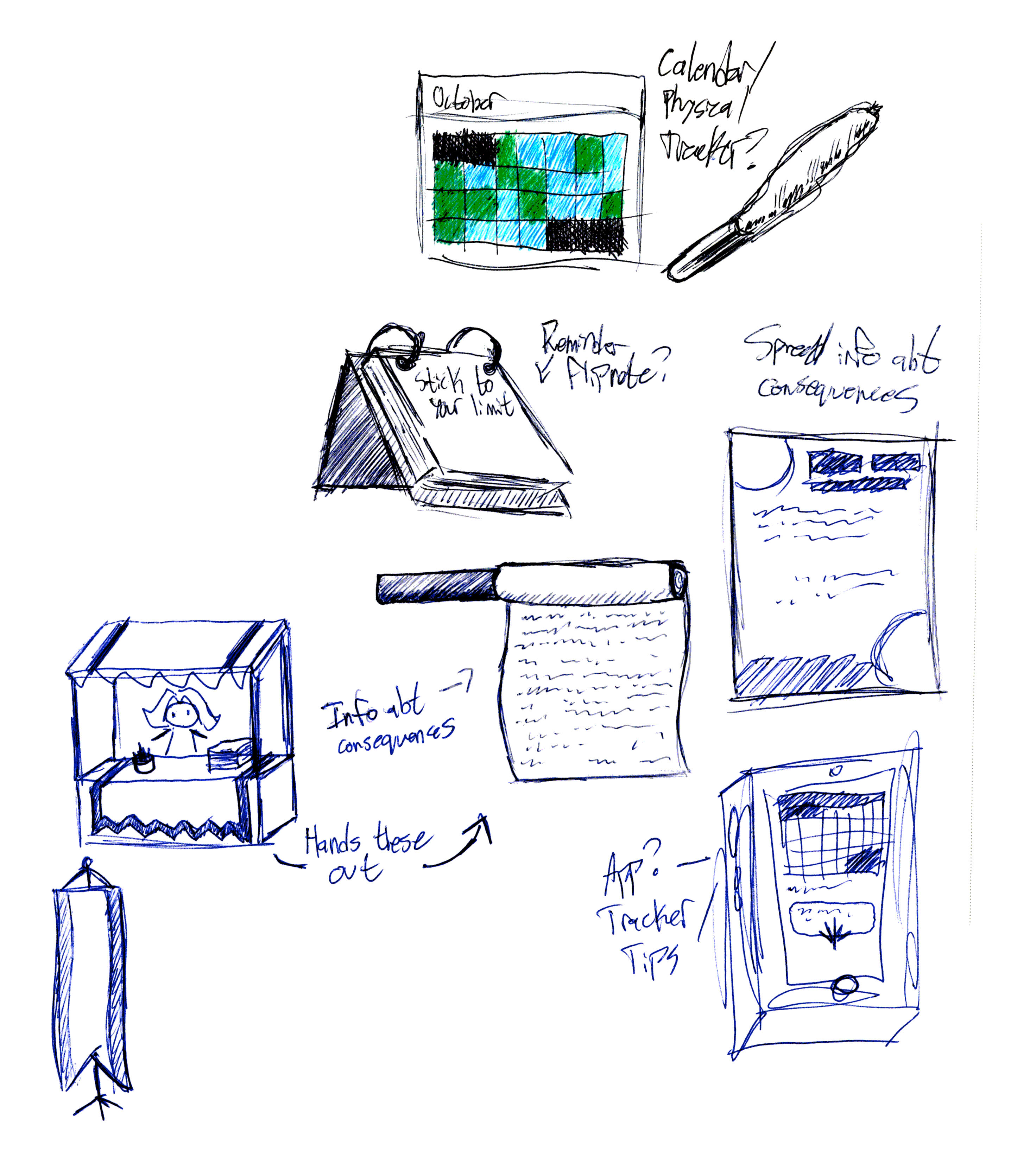 The end-product was a small video game device taking inspiration from games like Tamagotchis and Tomodachi Life (both games have the user take care of small, virtual characters). I chose this approach for two main reasons: retro Y2K-esque technology has been gaining a lot of popularity among my intended demographic online, and people tend to notice others flaws before their own. To elaborate, this little Kenkodachi character is representative of the user and how they treat themselves. If the user makes themselves lunch, they would also feed the Kenkodachi. If the user consumed cannabis, so would the Kenkodachi. The goal is for the user to be able to recognize the impact of their actions on the Kenkodachi and reflect on how their actions may be impacting themselves.